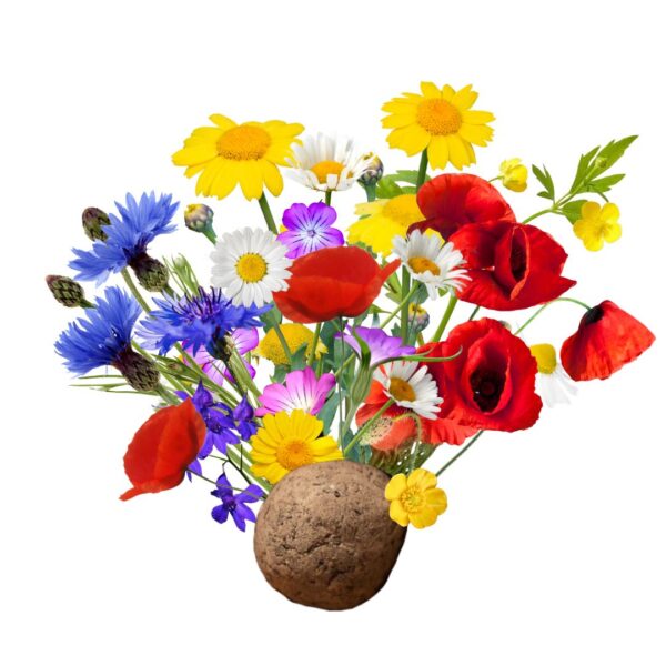 Bomby kwietne z nasionami rodzimych kwiatów polnych, czyli kwitnących chwastów. Dawniej kolorowy element sielskich wiejskich krajobrazów, obecnie coraz częściej narażone są na wyginięcie.